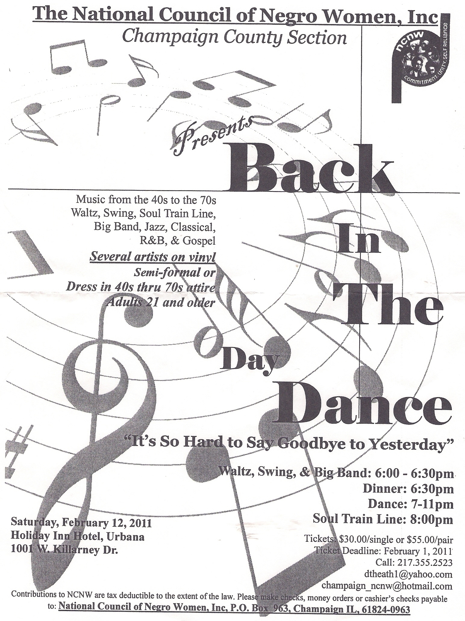 "National Council of Negro Women "Back in the Day Dance" Flyer," in eBlack Champaign-Urbana, Item #1263, https://eblackcu.net/portal/items/show/1263 (accessed January 21, 2026).