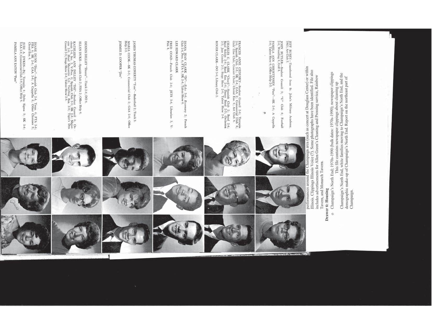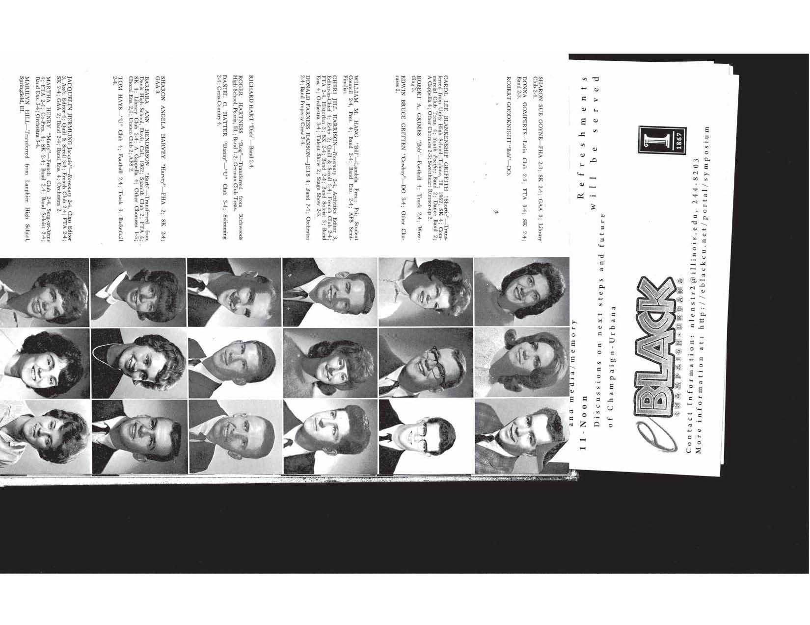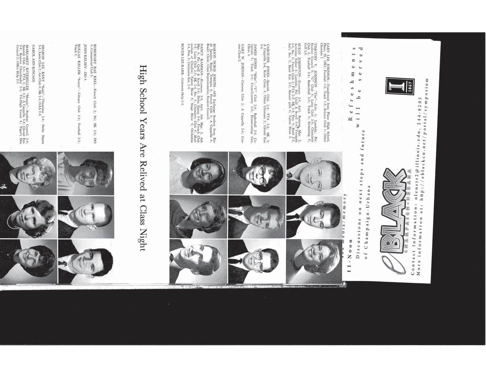 These yearbooks were digitized by eBlackCU Summer 2011 interns, Adrian Rochelle, Daunelle Thompson and Nathan Owens, at the Department of African-American Studies, University of Illinois. These yearbooks were borrowed from community high schools and/or the Urbana Free Library Champaign County Historical Archives. Some of these yearbooks have had pages or photographs ripped out. If you notice any gaps, and if you have more complete yearbooks, please contact us and we will be happy to update this website with more complete information.