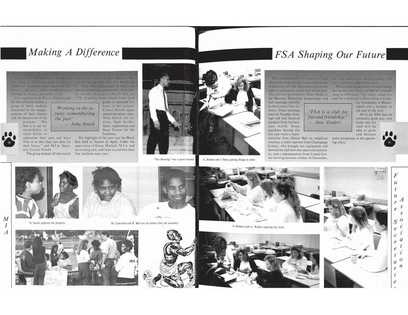 These yearbooks were digitized by eBlackCU Summer 2011 interns, Adrian Rochelle, Daunelle Thompson and Nathan Owens, at the Department of African-American Studies, University of Illinois. These yearbooks were borrowed from community high schools and/or the Urbana Free Library Champaign County Historical Archives. Some of these yearbooks have had pages or photographs ripped out. If you notice any gaps, and if you have more complete yearbooks, please contact us and we will be happy to update this website with more complete information.