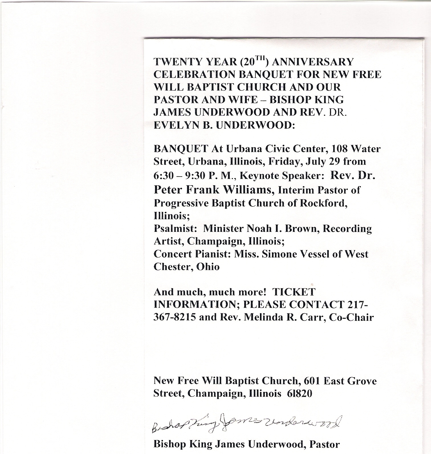 "New Free Will Baptist Church 20th Anniversary Flyer," in eBlack Champaign-Urbana, Item #2013, https://eblackcu.net/portal/items/show/2013 (accessed January 19, 2026).