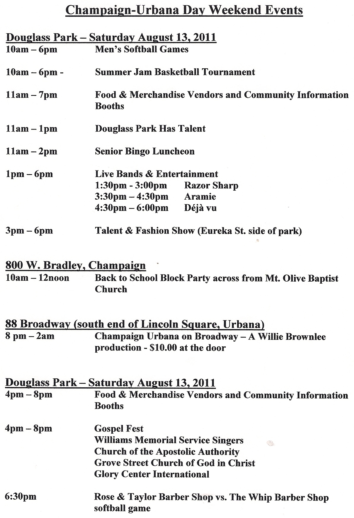 "C-U Days 2011 Schedule," in eBlack Champaign-Urbana, Item #2016, https://eblackcu.net/portal/items/show/2016 (accessed January 19, 2026).