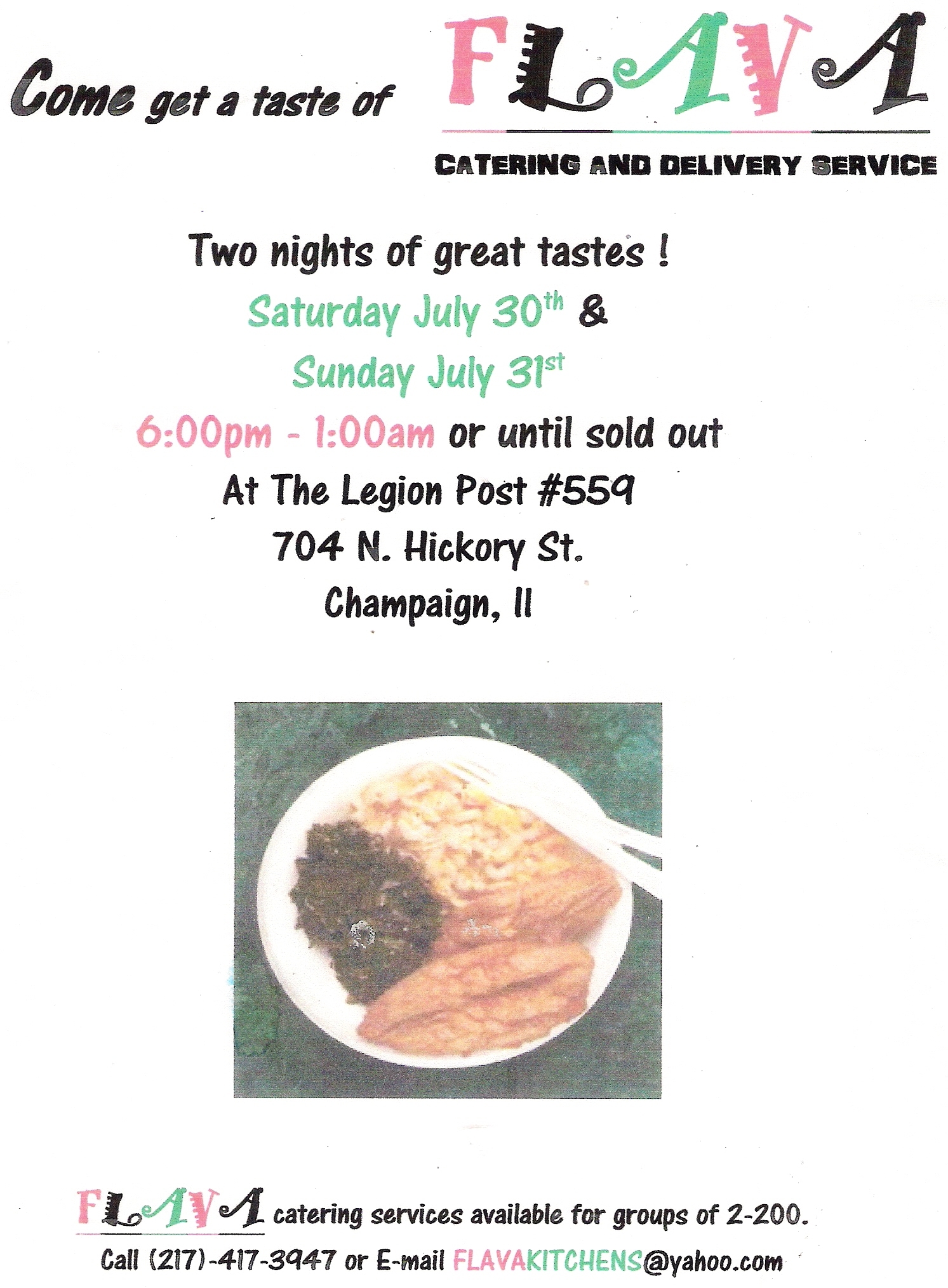 "Flava Catering and Delivery Service Flyer," in eBlack Champaign-Urbana, Item #2031, https://eblackcu.net/portal/items/show/2031 (accessed January 9, 2026).