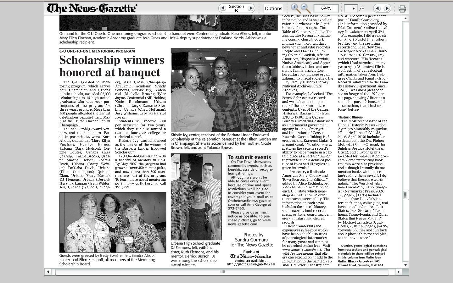 Scholarships were awarded to Champaign and Urbana High school students through the One-To-One Mentoring Program.