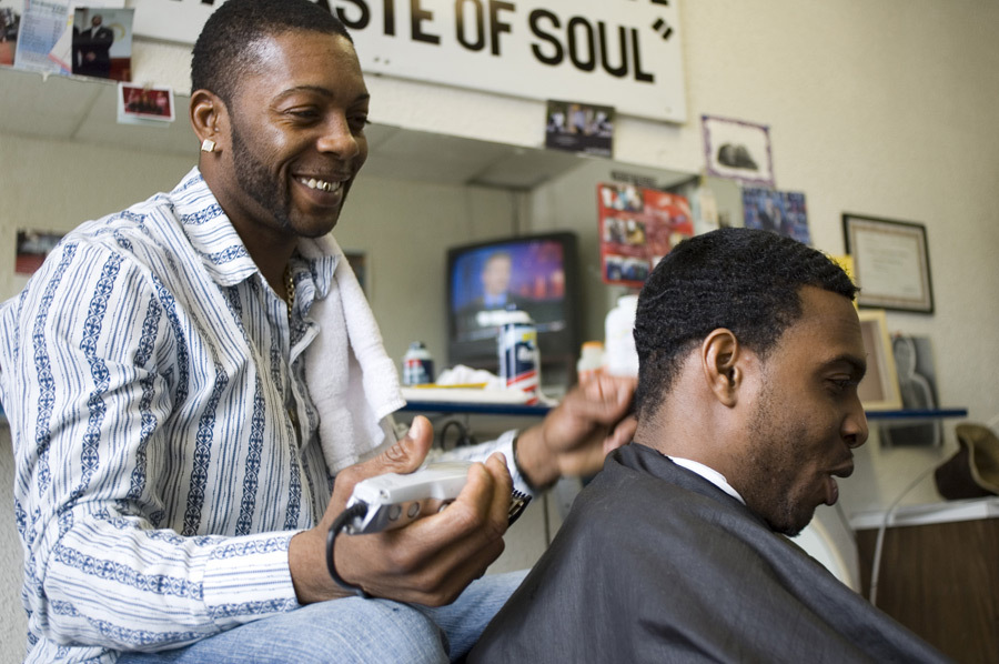 Article on the history and current state of the North End and community development in the African-American community there. Photo Caption: Seon Williams, from Champaign, cuts the hair of Christopher Smith, 25, from Chicago, at The Whip Hair Designs in northern Champaign on Thursday. Williams is an active leader in the area, advising local youths and working toward community development.