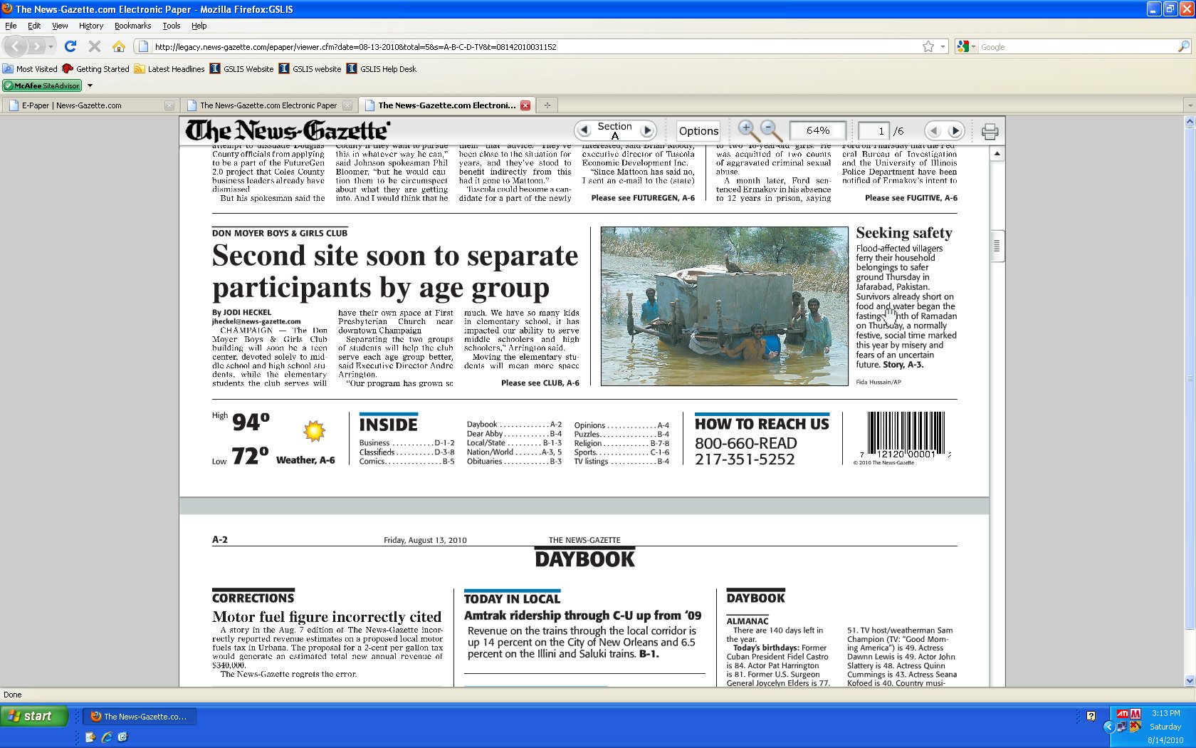 "News-Gazette, August 13 and 14 2010," in eBlack Champaign-Urbana, Item #632, https://eblackcu.net/portal/items/show/632 (accessed January 19, 2026).