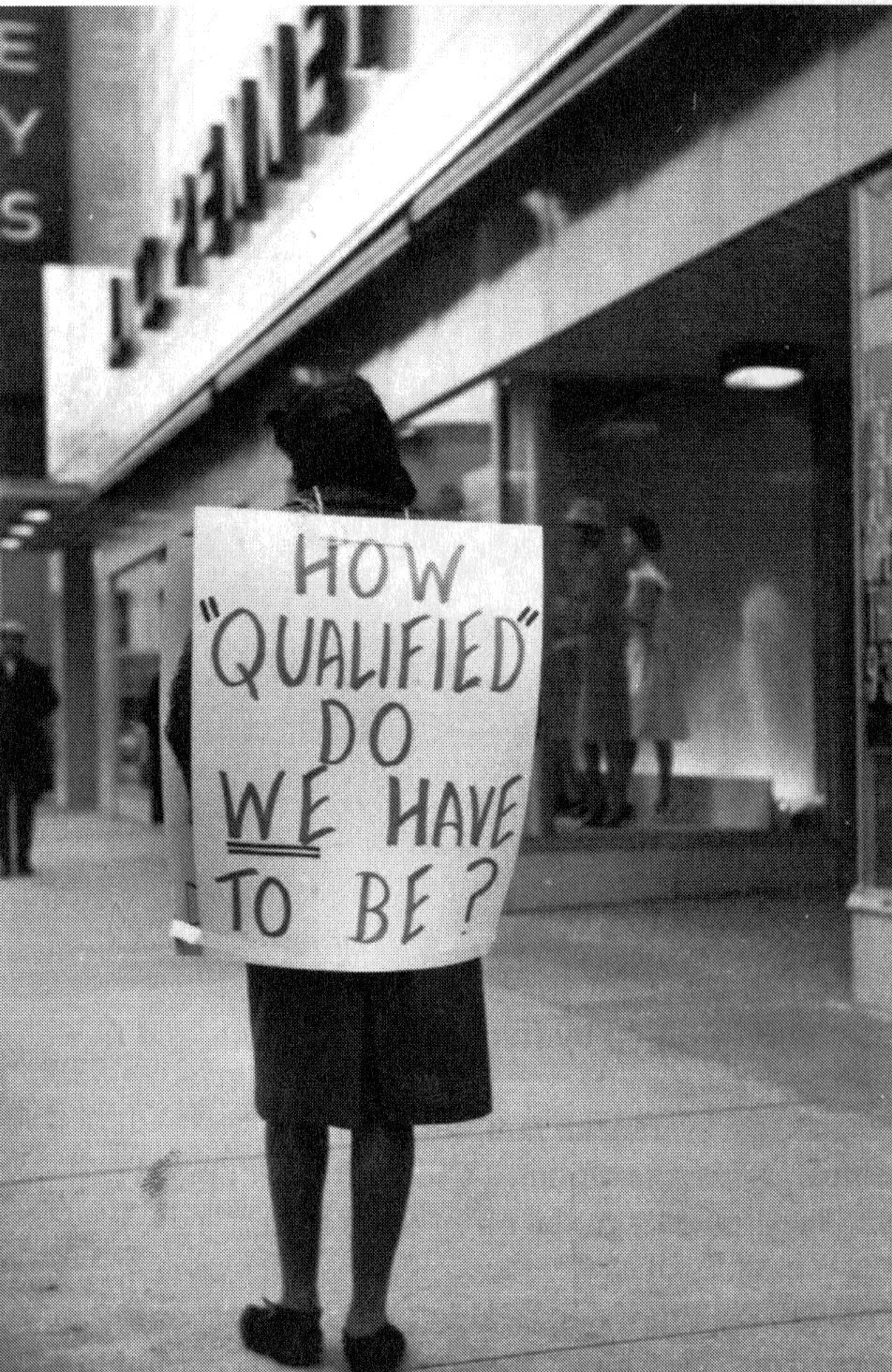 A picket protests the lack of black employees at the downtown Champaign J.C. Penney store in 1961.