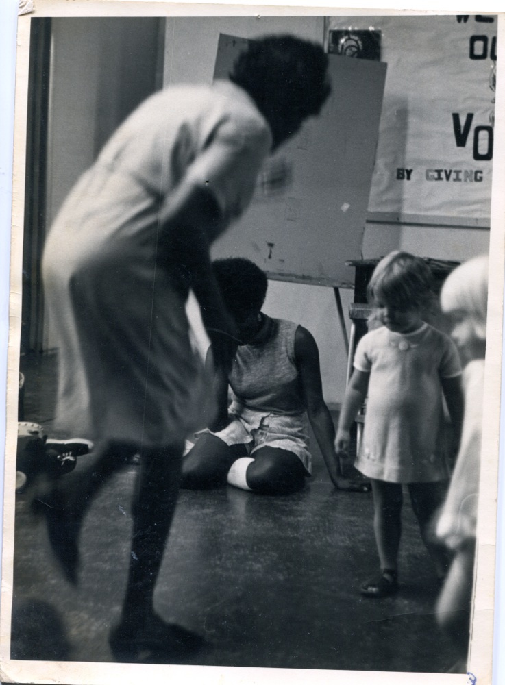 Photographs of Helen Johnson and the Salem Pre-School in the mid-1950s. The first photograph is badly deteriorated.