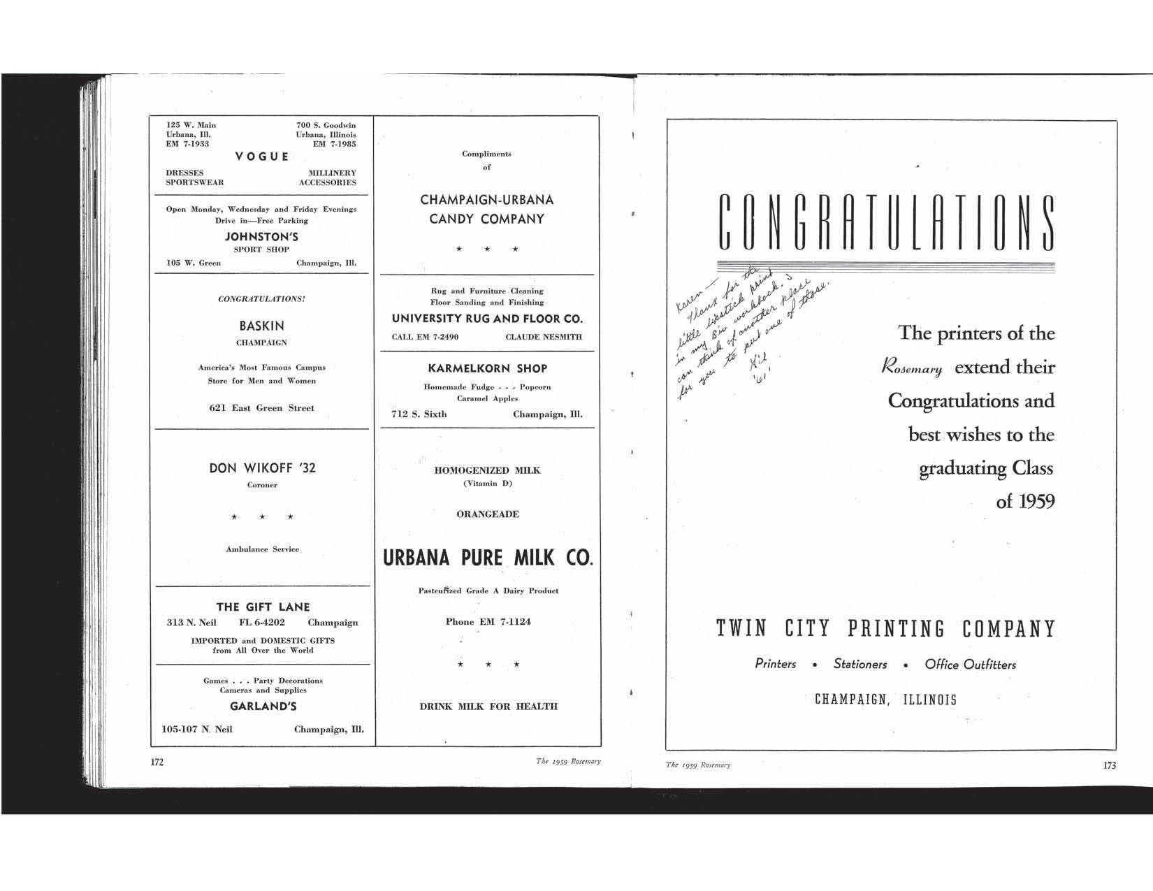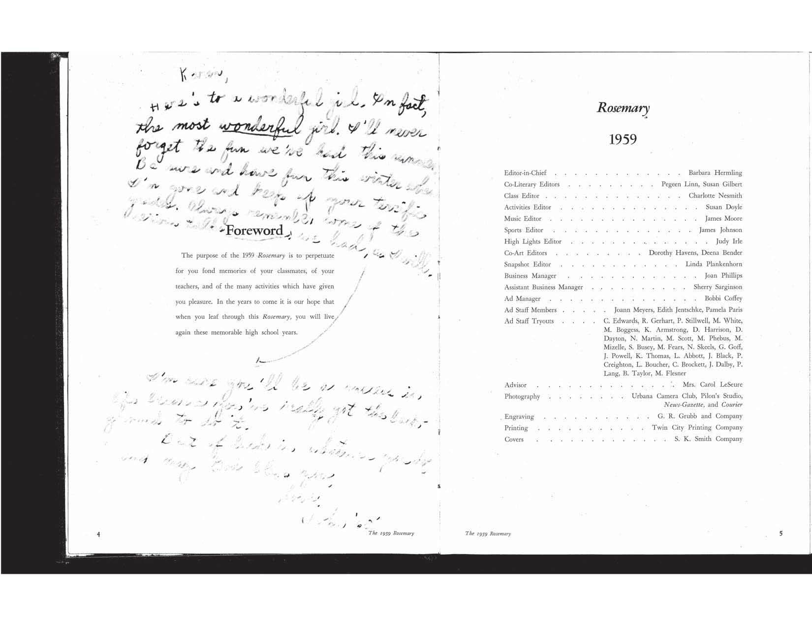 Urbana High School Rosemary - 1959