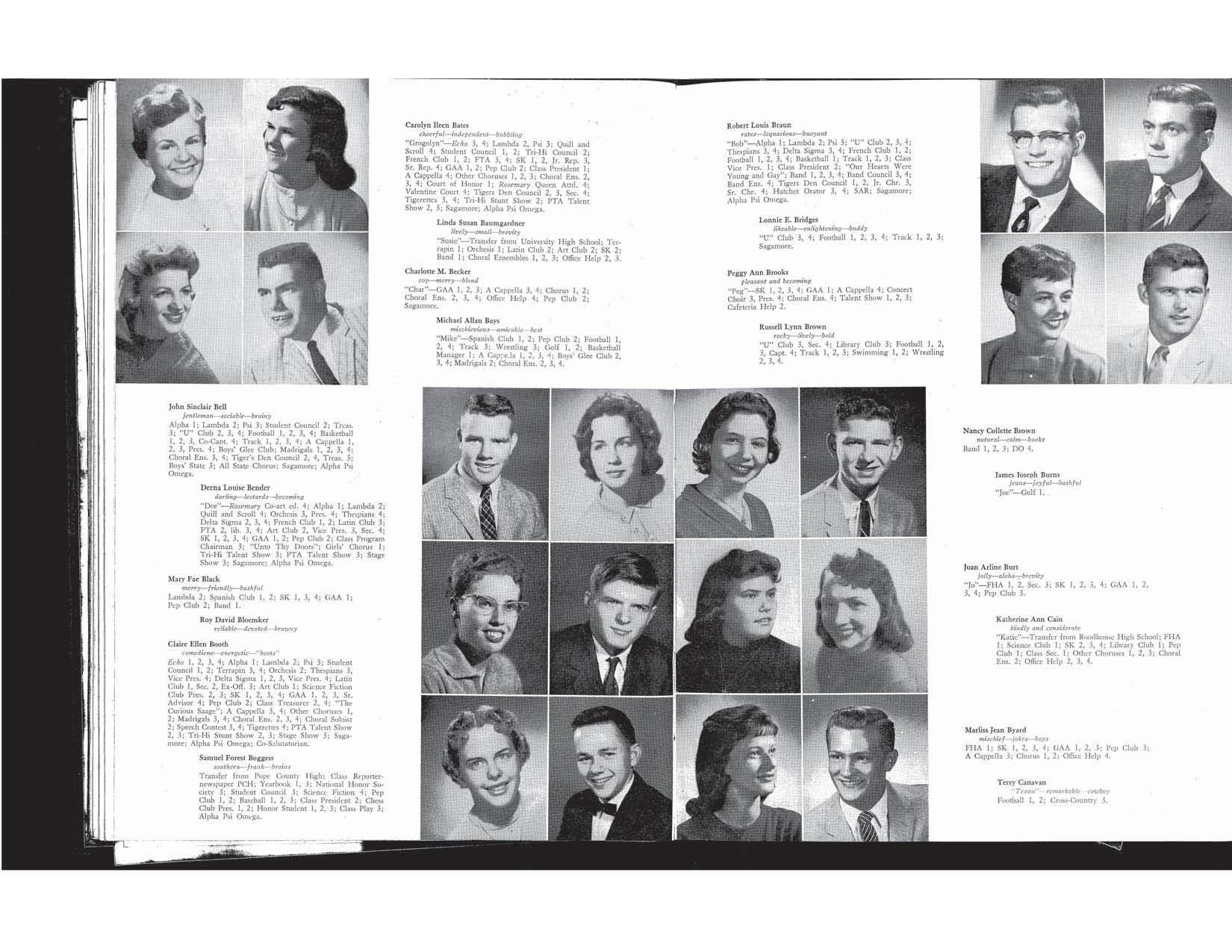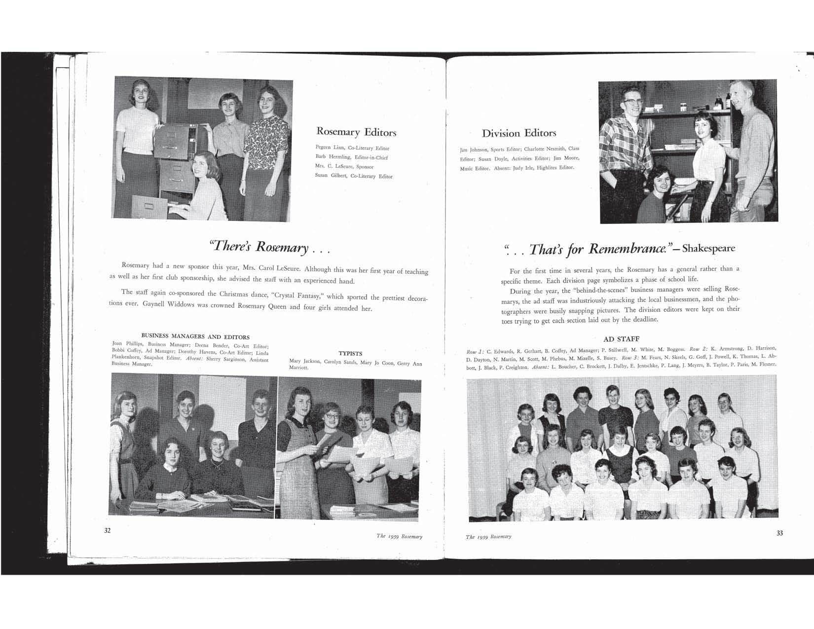 The first file below (pdf) is a complete digital copy of the Yearbook. Following this complete copy are jpegs for every double-page spread in the yearbook. Click on any of these thumbnails to see larger versions of the yearbook pages.
