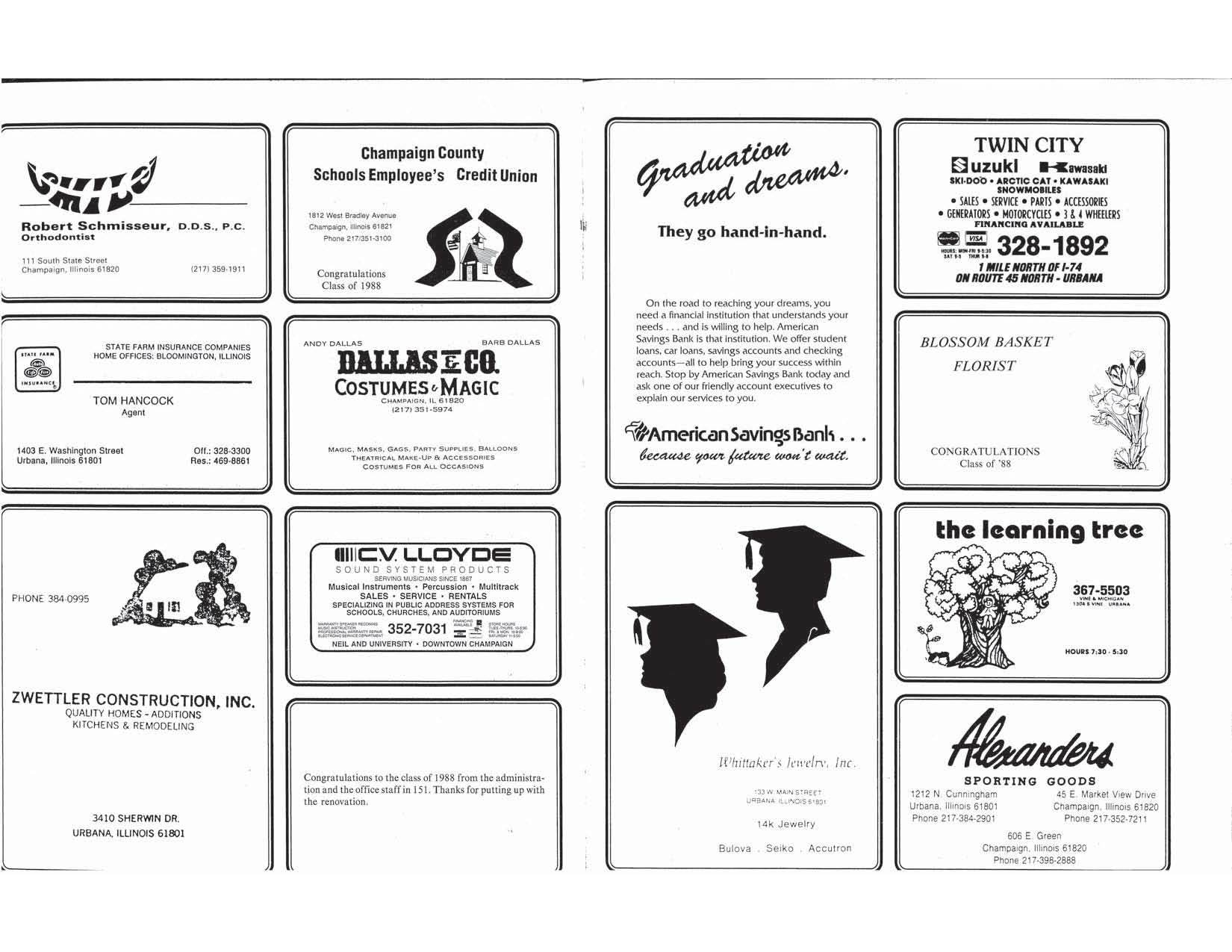 These yearbooks were digitized by eBlackCU Summer 2011 interns, Adrian Rochelle, Daunelle Thompson and Nathan Owens, at the Department of African-American Studies, University of Illinois. These yearbooks were borrowed from community high schools and/or the Urbana Free Library Champaign County Historical Archives. Some of these yearbooks have had pages or photographs ripped out. If you notice any gaps, and if you have more complete yearbooks, please contact us and we will be happy to update this website with more complete information.