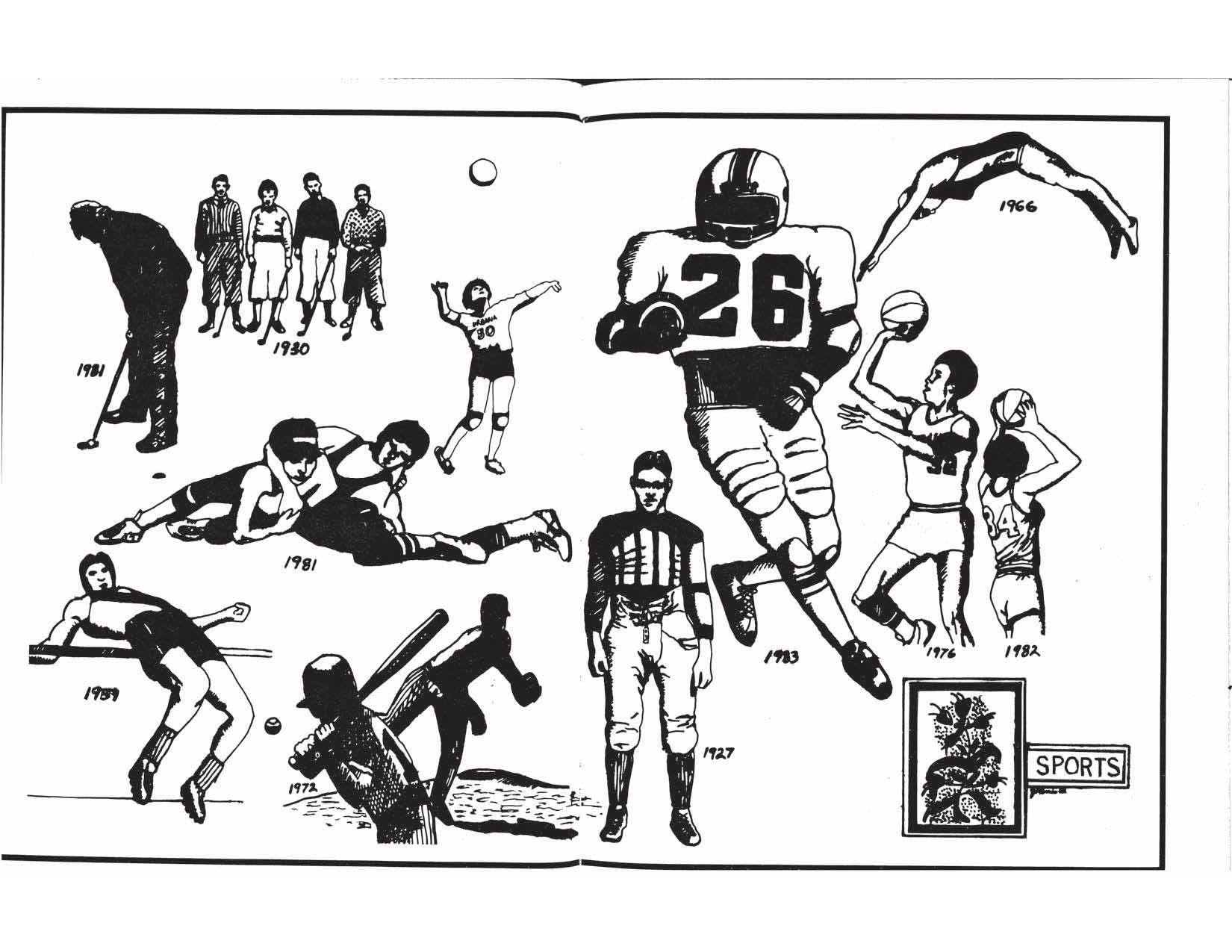 The first file below (pdf) is a complete digital copy of the Yearbook. Following this complete copy are jpegs for every double-page spread in the yearbook. Click on any of these thumbnails to see larger versions of the yearbook pages.