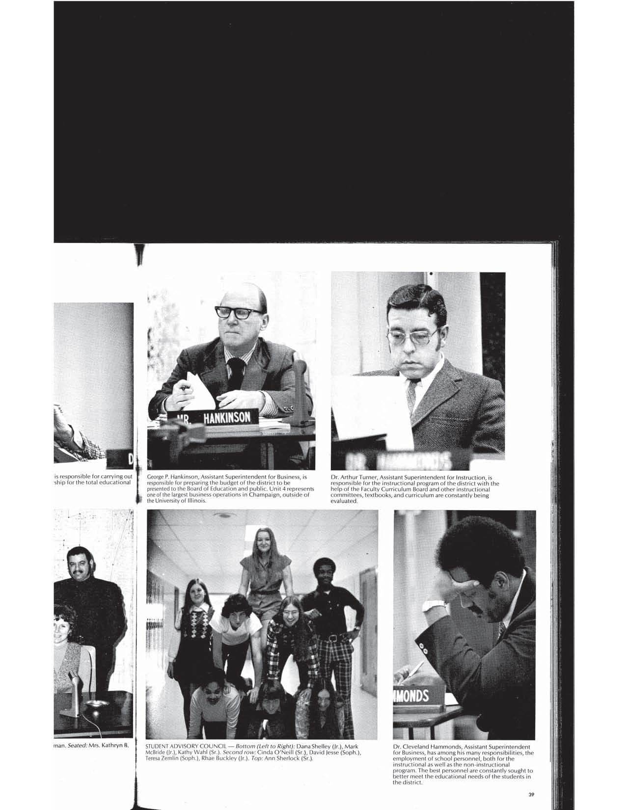 These yearbooks were digitized by eBlackCU Summer 2011 interns, Adrian Rochelle, Daunelle Thompson and Nathan Owens, at the Department of African-American Studies, University of Illinois. These yearbooks were borrowed from community high schools and/or the Urbana Free Library Champaign County Historical Archives. Some of these yearbooks have had pages or photographs ripped out. If you notice any gaps, and if you have more complete yearbooks, please contact us and we will be happy to update this website with more complete information.