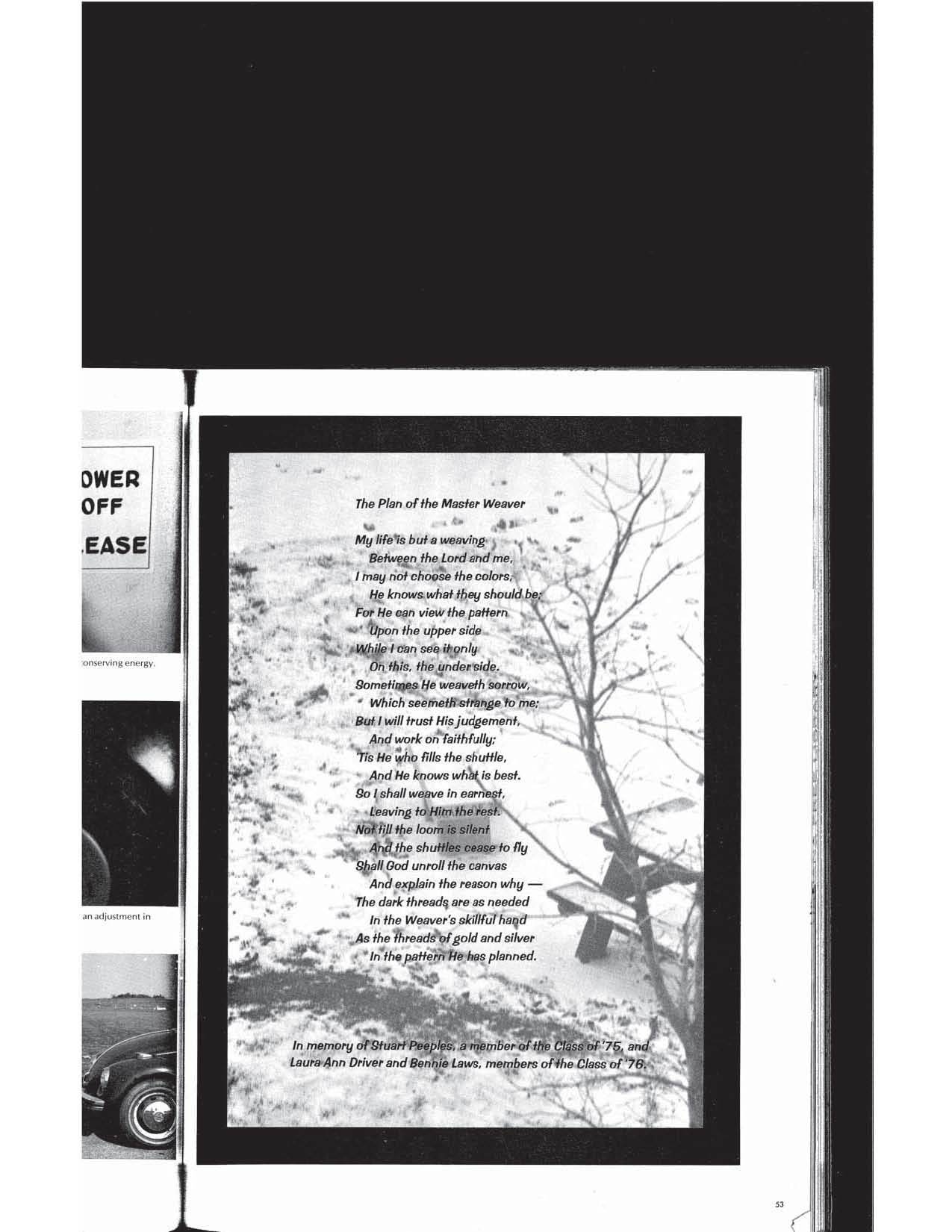 The first file below (pdf) is a complete digital copy of the Yearbook. Following this complete copy are jpegs for every double-page spread in the yearbook. Click on any of these thumbnails to see larger versions of the yearbook pages.