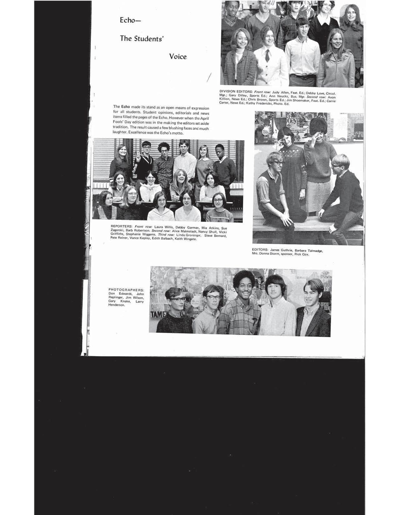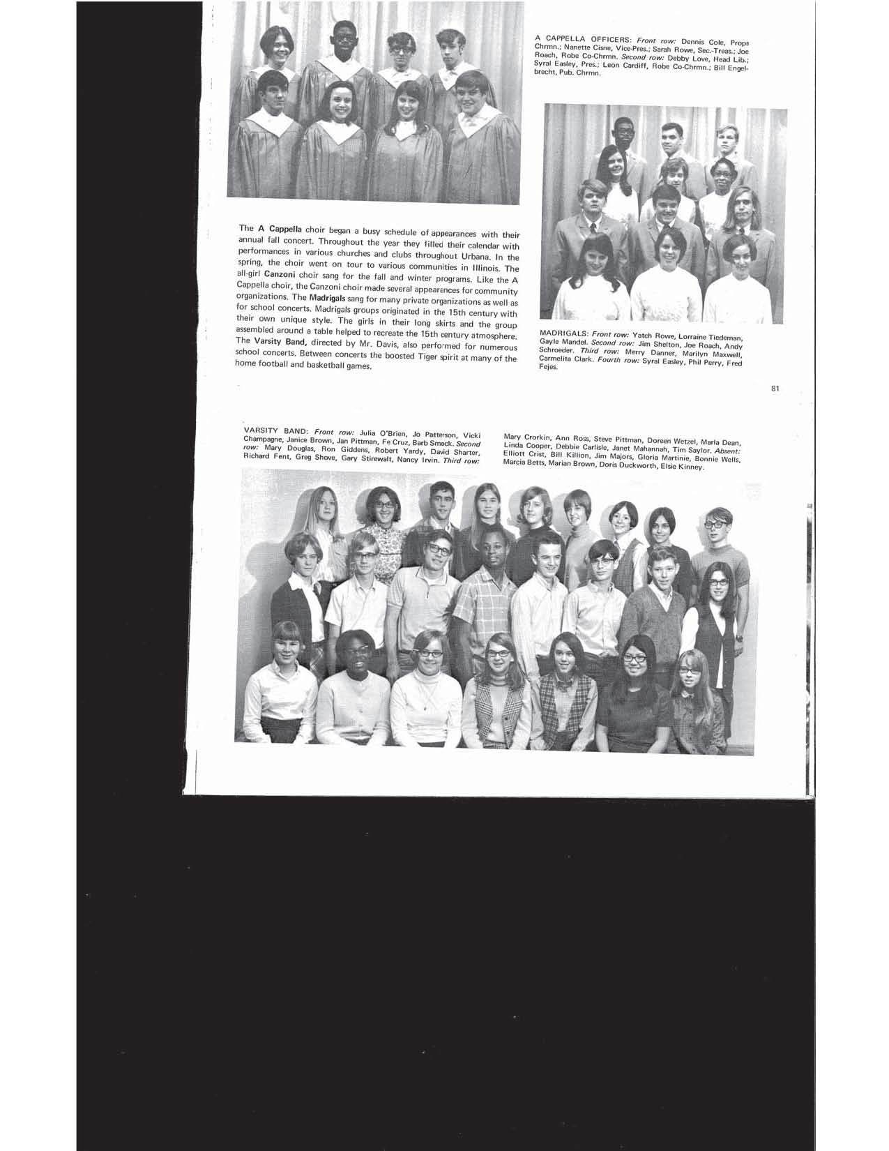These yearbooks were digitized by eBlackCU Summer 2011 interns, Adrian Rochelle, Daunelle Thompson and Nathan Owens, at the Department of African-American Studies, University of Illinois. These yearbooks were borrowed from community high schools and/or the Urbana Free Library Champaign County Historical Archives. Some of these yearbooks have had pages or photographs ripped out. If you notice any gaps, and if you have more complete yearbooks, please contact us and we will be happy to update this website with more complete information.