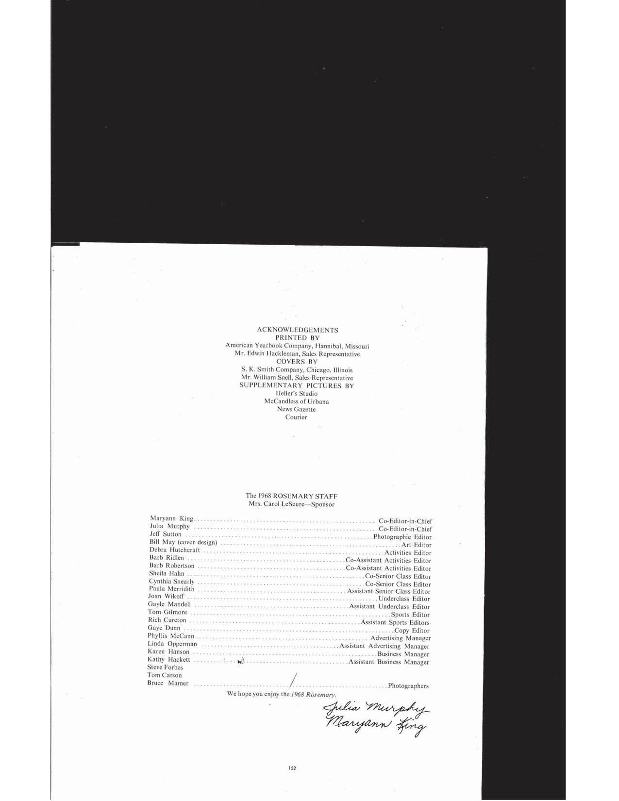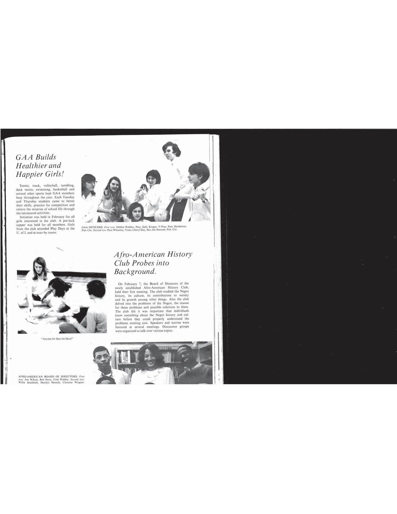 These yearbooks were digitized by eBlackCU Summer 2011 interns, Adrian Rochelle, Daunelle Thompson and Nathan Owens, at the Department of African-American Studies, University of Illinois. These yearbooks were borrowed from community high schools and/or the Urbana Free Library Champaign County Historical Archives. Some of these yearbooks have had pages or photographs ripped out. If you notice any gaps, and if you have more complete yearbooks, please contact us and we will be happy to update this website with more complete information.