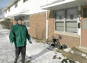 Image Caption: Burch Village manager Karen Hite walks through the Champaign public housing complex Friday. The Champaign County Housing Authority and the city of Champaign plan to raze the 52-year-old complex later this year and replace it with new housing. Photographer: by John Dixon