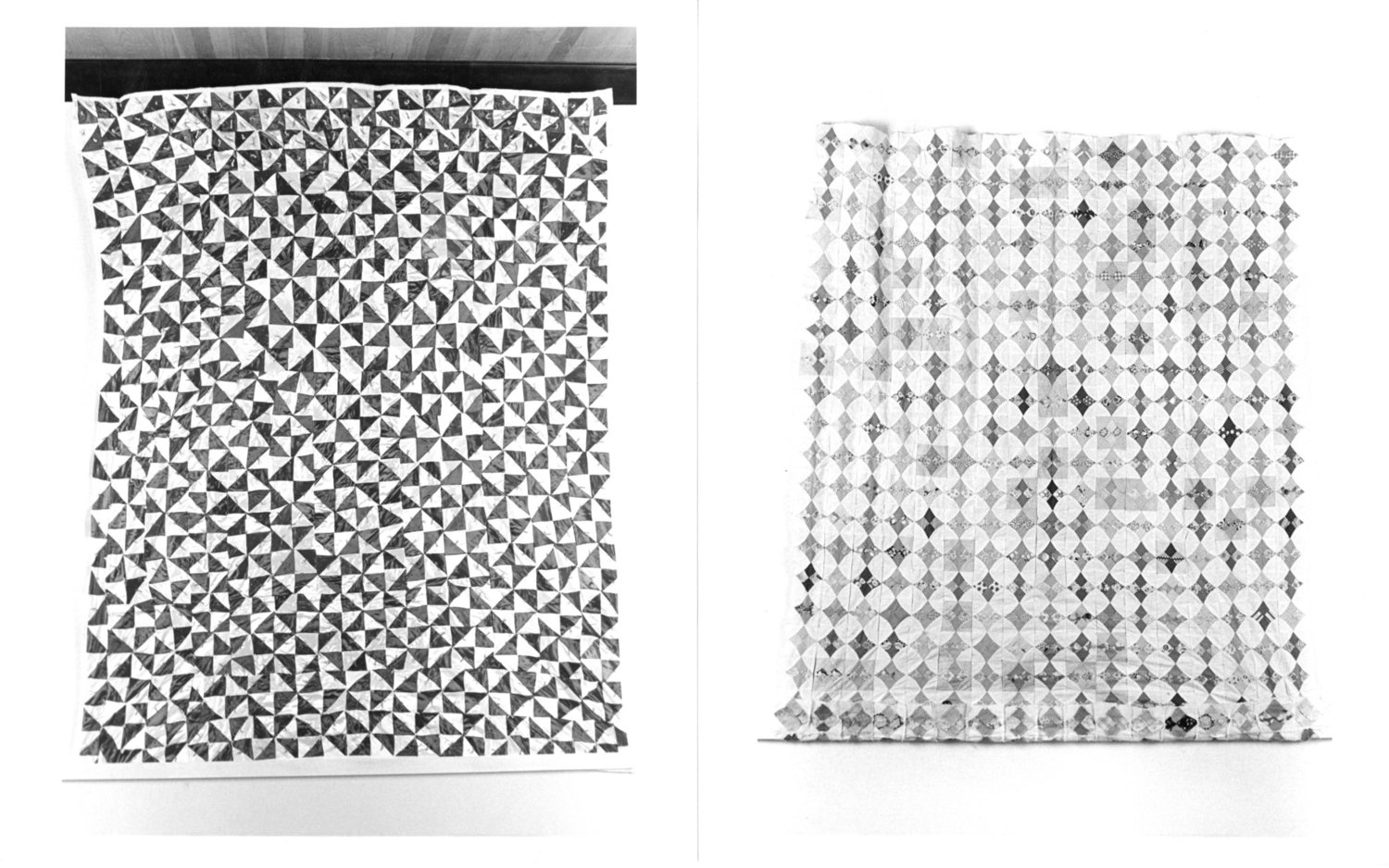 Unquilted top by Landau Cannon Butler and Hattie Fry (left) and Mary Louise McCoy work (right)