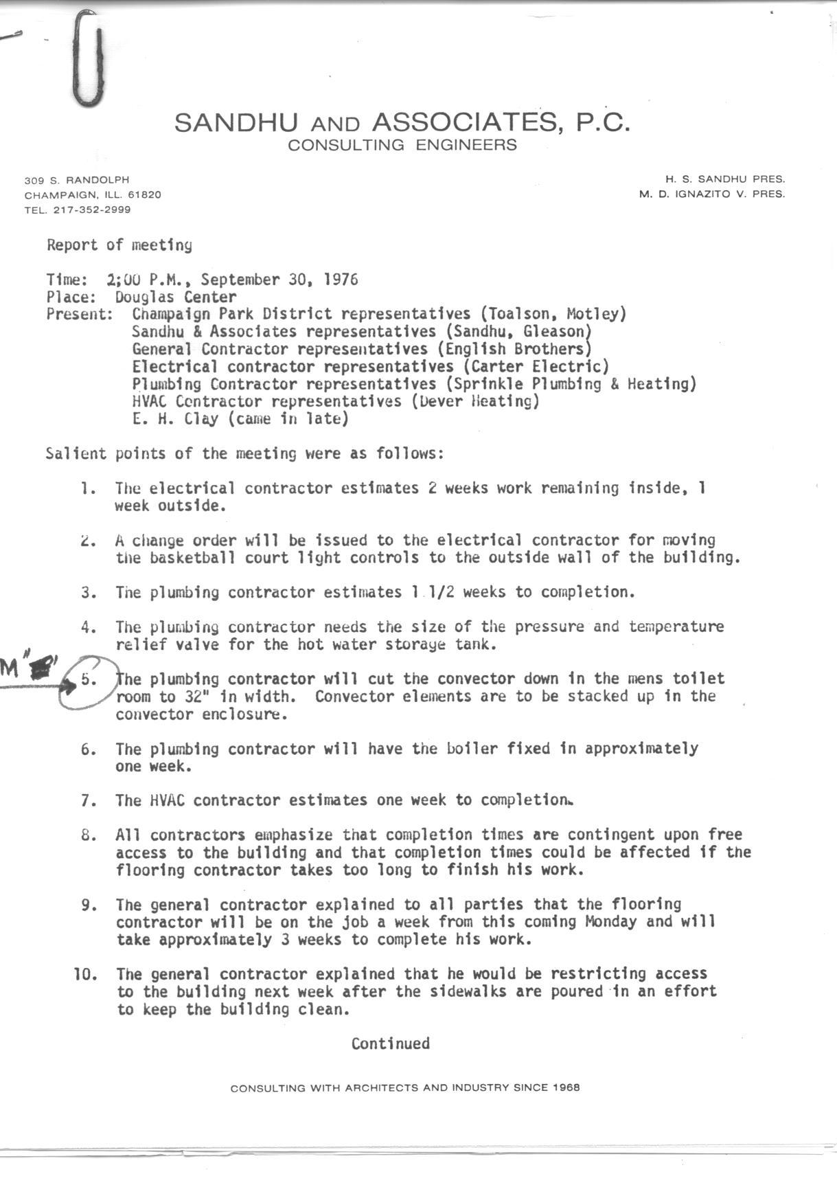 Files of the English Brothers, a local construction firm, regarding the construction of the new Douglass Center in the 1970s.