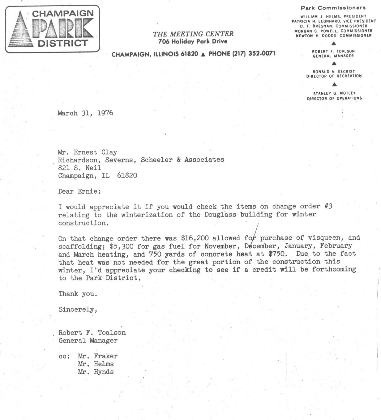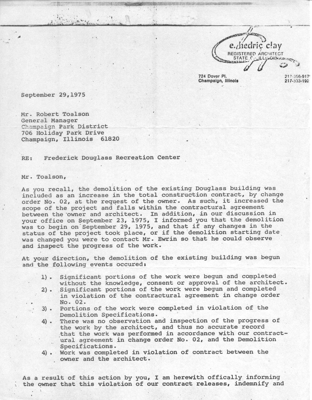 Douglass Center, Archival Records, Black Power, Construction, Urban Renewal, Robert Toalson, Champaign Park District